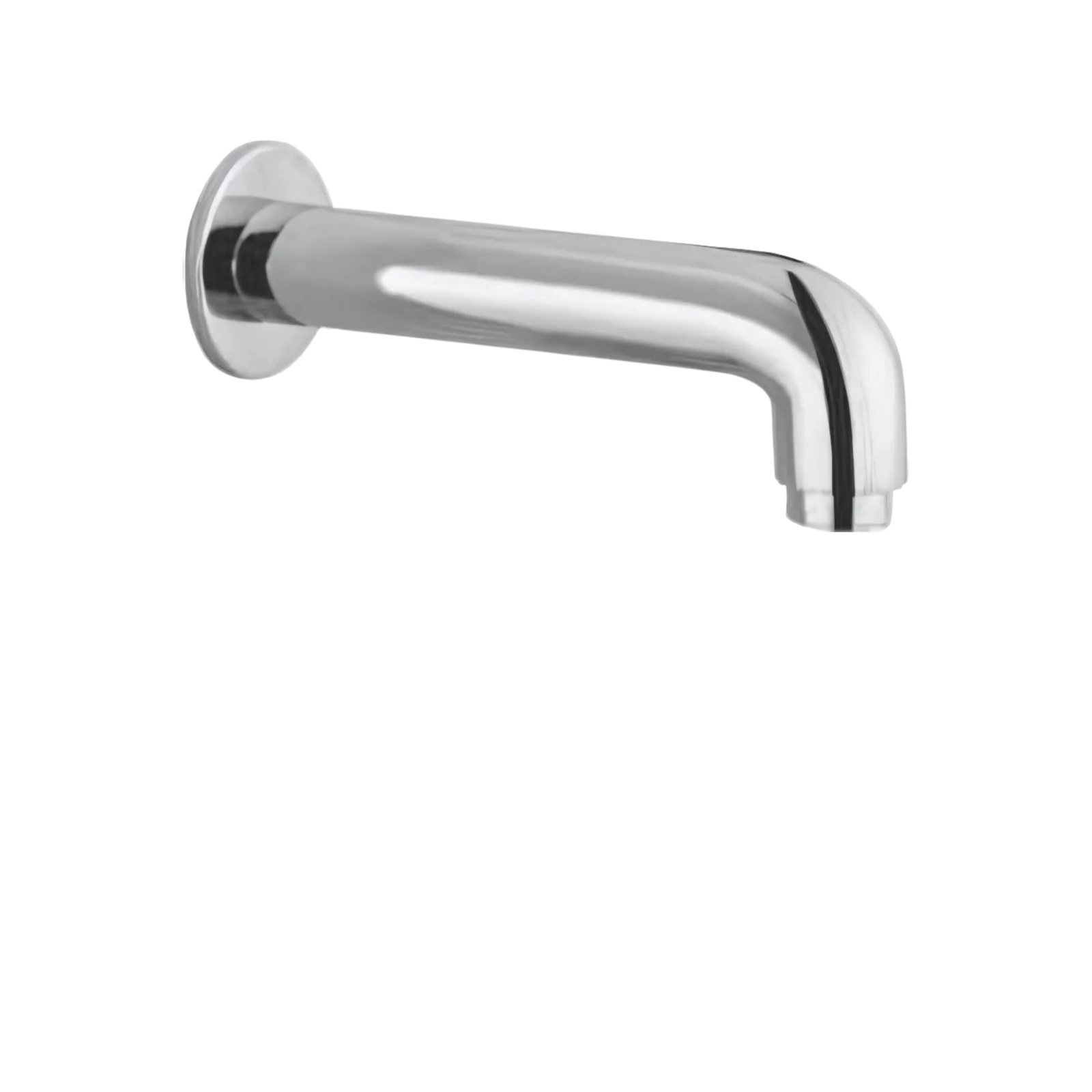 Wall-mounted bath tub spout with a chrome finish. Ideal for bathtubs, offering a sleek and minimalist design.